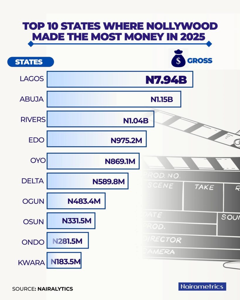The state’s performance also highlights its central role in shaping Nollywood’s commercial success.