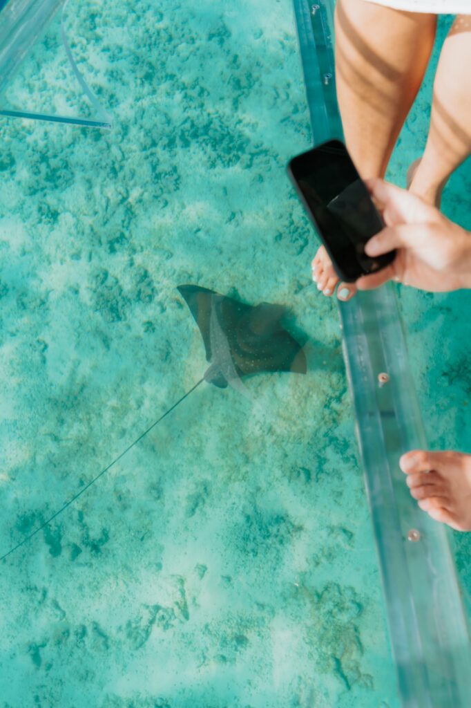 Their fully transparent boats allow guests to admire the marine life and coral formations directly beneath them as their excursion boars glide across the clear waters. The experience is calm, scenic, and close to nature — with the option for guests to snorkel during the tour for an even more immersive encounter with the reef and marine species.
