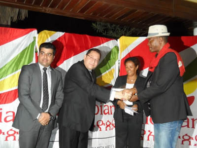 Management of Satguru Travel and Tours (left) receiving an award from Genet Michael (middle) and Ikechi (CEO Akwaaba Awards)