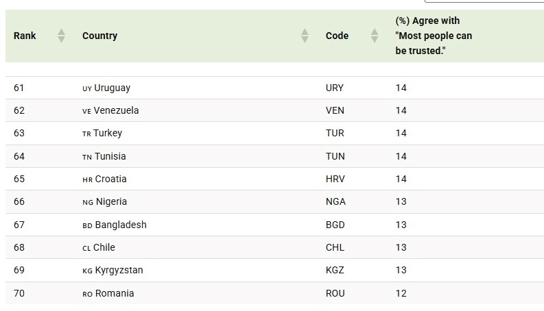 Ranked: Most and Least Trusting Countries